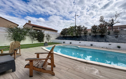 À vendre, belle maison de plain-pied d’environ 100 m2 habitables sur une parcelle plate de 624 m2 avec piscine 8 x